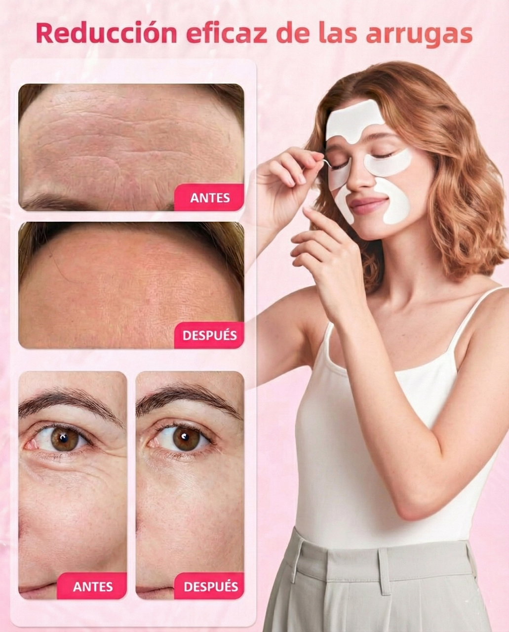 Por la noche, estos parches faciales 3 en 1 actúan en frente, ojeras y líneas de sonrisa con ácido hialurónico y colágeno. Al despertar, tu piel se ve más suave, más lisa y apariencia renovada.