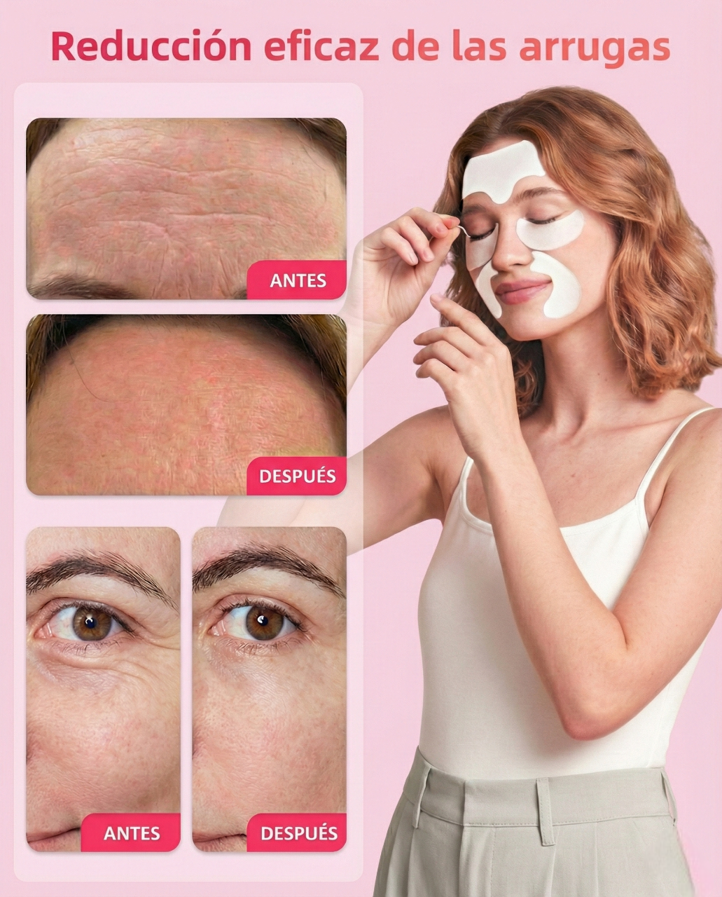 Sin agujas ni dolor. Solo resultados. Nuestros parches reafirman tu piel durante la noche. Evitan las marcas de expresión al dormir. Hidratan y alisan las arrugas profundas. Tu lifting diario, pero en casa.